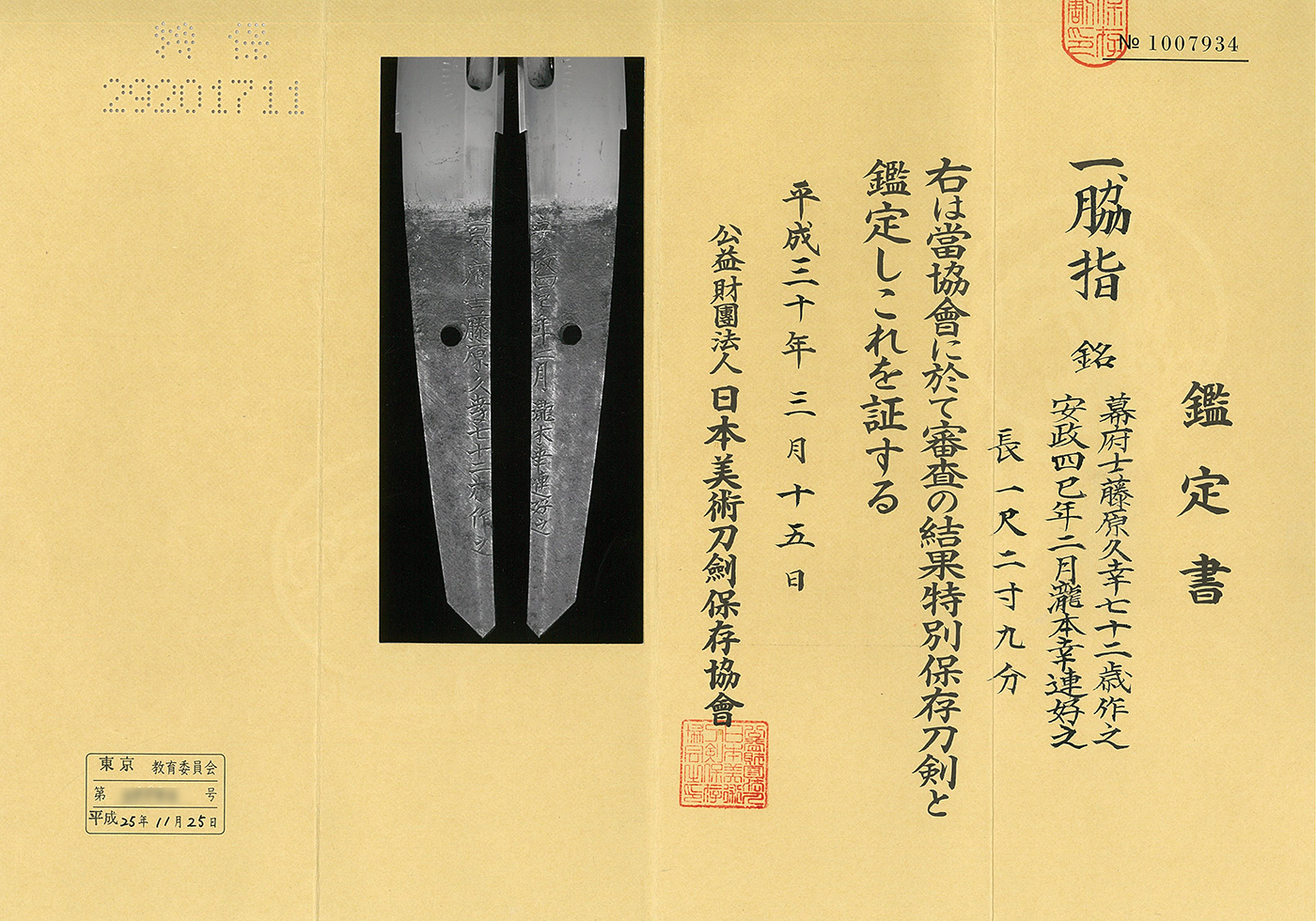 特別保存刀剣 NBTHK Tokubetsu hozon 品番No-sw25321 価格(Price) 420,000円(JPY)
