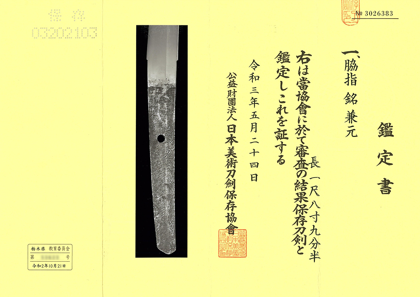 保存刀剣 NBTHK Hozon 品番No-sw26301 価格(Price) 400,000円(JPY)