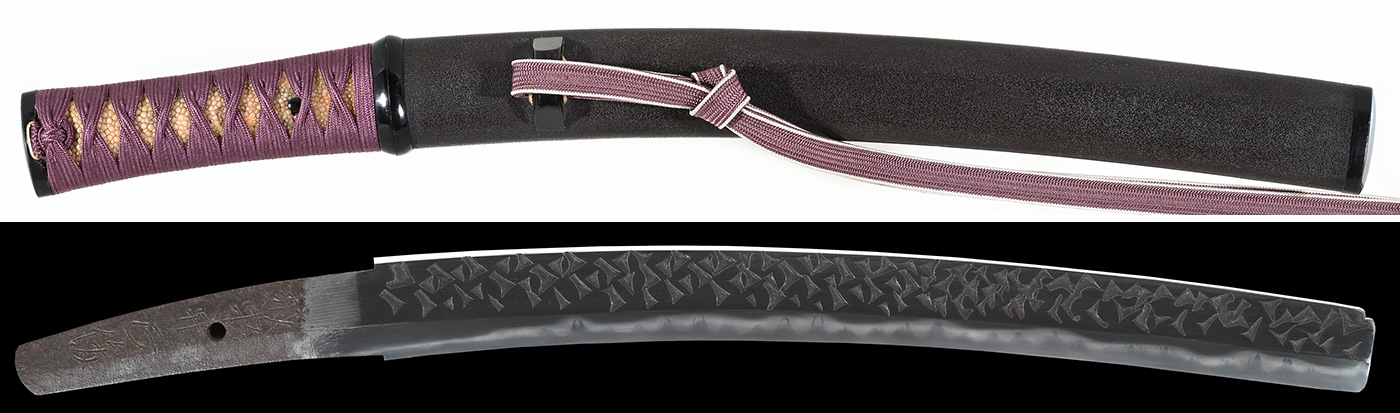 特徴:本作は大変珍しい造り込みの体配で、逆刃刀のように刃と棟が逆向きに作られている、これは華刀、花刀、華鉈(かとう、はながたな、はななた)などと呼ばれており、茶室などでお花を活ける際に腰に帯びるもので花を切るための道具になります、銘はそれなりに上手く切られておりますが偽名になります