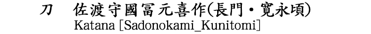 特別保存刀剣 刀 佐渡守國冨元喜作(長門・寛永頃) |
