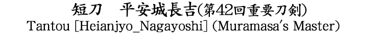 重要刀剣 短刀 平安城長吉(第42回重要刀剣)(村正の師) |