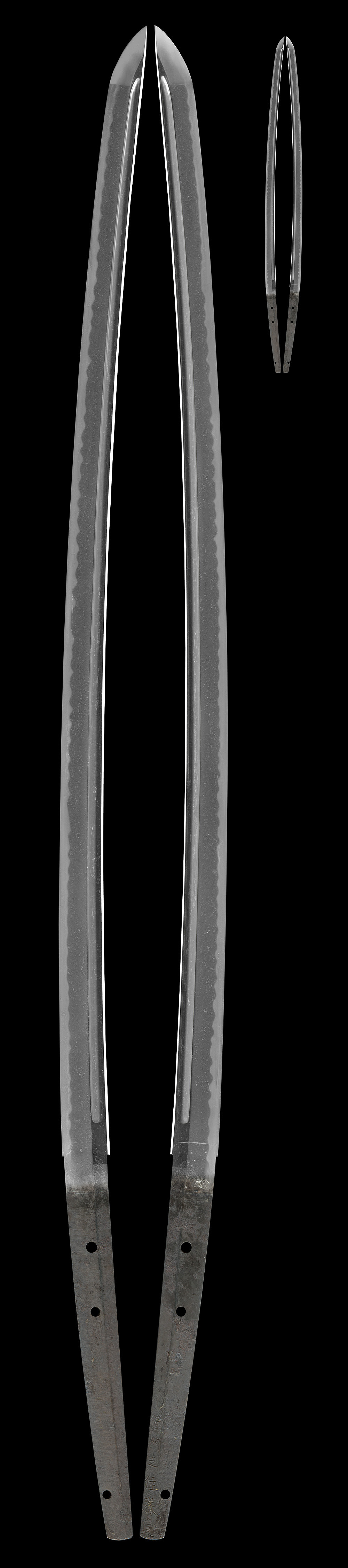 | 注文する/Order | 特徴:備後国法華派は、三原派とは別系の備後国葦田郡の国分寺跡に於いて鍛刀した一派で、その流祖を助国と伝えている。この派の活躍年代は南北朝時代より室町時代に及んでおり、一乗・兼安・行吉・重安・重家・信兼等の作が現存している、またこの派の所以は日蓮宗の信者であった事からと伝えられ、この派の著名工一乗の作に『何妙法蓮華経一乗』と刻した短刀や「備後国尾道住日蓮宗法師一乗作」と切った刀がある事からも裏付けられる。 |