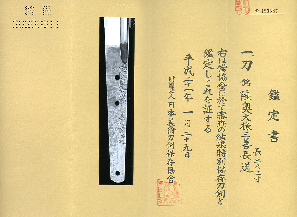 特別保存刀剣 NBTHK Tokubetsu Hozon 品番No-sw10101 価格(Price) 販売済SOLD