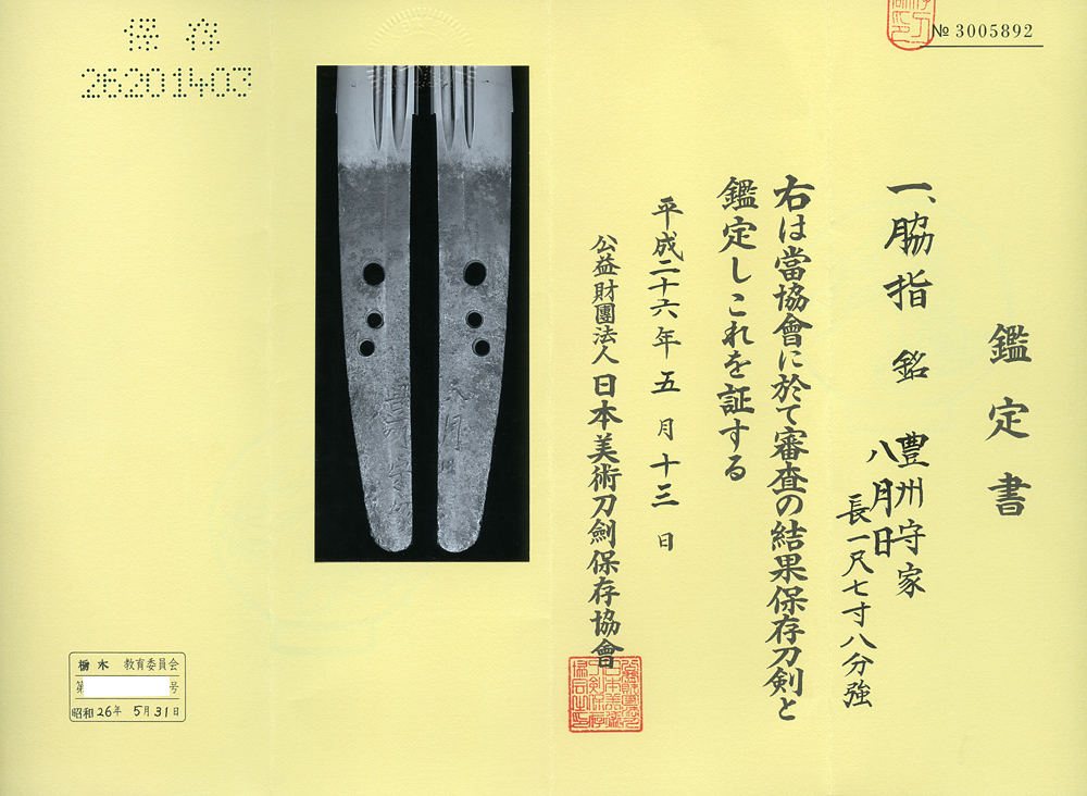脇差 豊州守家 八月日 Wakizashi[Hoshu_Moriie]