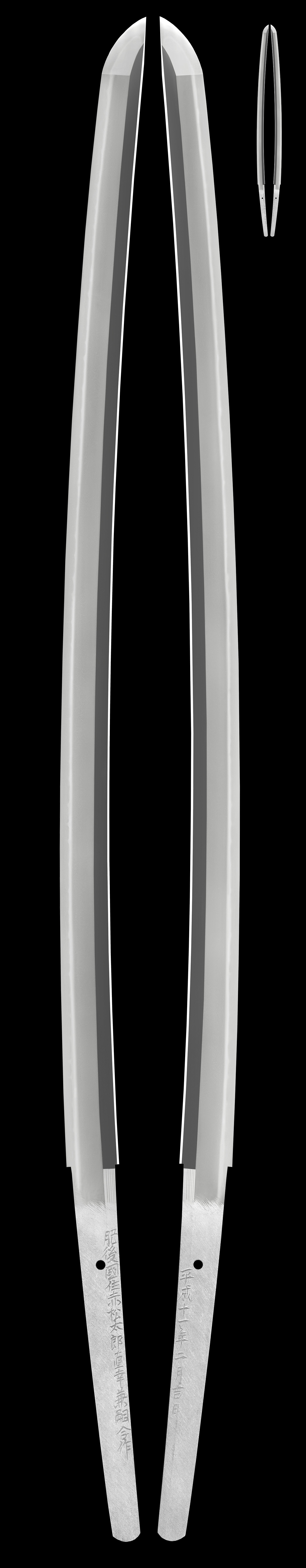 特徴:赤松太郎直幸は本名を木村正男、木村兼重の弟で赤松太郎兼嗣は本名を木村兼定、本作は直幸と兼嗣の合作。刀身を研ぎ上げたばかりで状態よくお勧め品です
