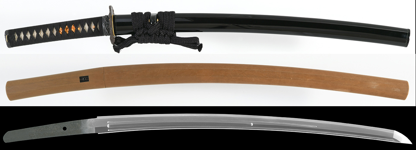 特徴:横山祐永は横山祐平の次男、兄祐盛が七兵衛祐定の養子となったため、父祐平の跡を継ぎました。天保四年に加賀介を受領、茎に菊紋と一の字を切る事を許され、友成五十六代孫と称し、天保・弘化頃に最も円熟した作品を残しています。本作は過去に岡山城天守閣で展示されていた刀です |