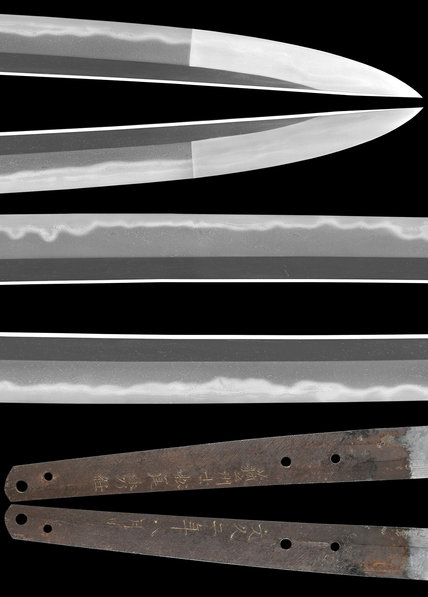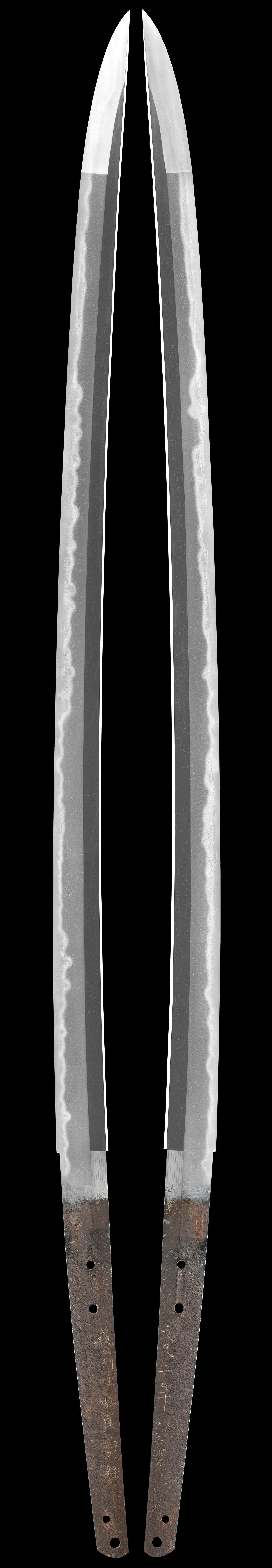 | 注文する/Order | 特徴:芸州士松尾秀任(ひでとう)は江戸の広島藩邸奥向き管理の役所に勤める武士で、本名は松尾助之丞、秀任は江戸赤坂の広島藩浅野家中屋敷内で釘・小 刀包丁等を作り、これを内職にして家計の足しにしていましたが、そのうち武士としては潔よい仕事ではない、恥ずかしくない物を作りたいと麹町に住む刀工の元へ行き技術を習得したと言われ、その刀工が幕末の新々刀最高位の刀工である源清麿であると推測される(赤坂から四 谷は1㎞前後の距離)見るからに作風は清麿を思わせ、地沸えよく付き、刃中は砂流し金筋入り匂口明るく冴える、茎の仕立ても大筋違で清麿の流れを汲んでいる事がうかがえる。 |