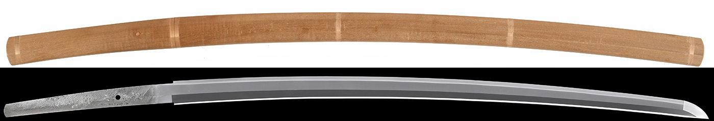 | 注文する/Order | 特徴:南満州鉄道中央研究所の日下和治博士を筆頭とするチームが、満州東辺道大栗子(だいりっし)で産する良質な鉄鉱石を低温精錬して得られたスポンジ鉄を再度溶解、成分調整して炭素量の多い鋼と炭素量の少ない純鉄(日下純鉄)を製造するのことを開発。これを用いてパイプ状に加工したのち日本刀に整形したものであり、古来の日本刀製法とは全く異なる。昭和十二年、同社大連鉄道工場が軍刀の大量生産を企画、翌十三年刀剣製作所設立、量産開始後の昭和十四年三月、松岡満鉄総裁により「興亜一心」と命名された。寒冷地で使用しても折れず曲がらずよく切れると評判となり、量産性も高いことから終戦までに約5万振りが生産された。初期名は「満鉄刀」と呼称していた為、これが通称となった。また、上記の経緯により、満鉄の鉄道レールを原料として製作されたというのは誤りである。近年では新規の登録は不可能とされていて、新たな発見や逆輸入など海外からの持ち込みも出来ず、現在登録証が付いているものだけとなり貴重となっています。本作は平成元年に刀剣徹斎の阿部義貞さんにしっかりとした研磨が施されいる |